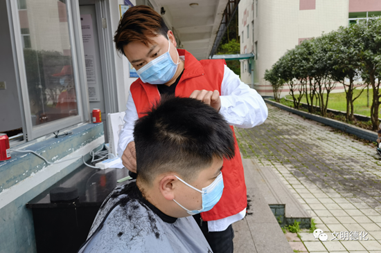 文明風4月2日訊 執勤人員24小時值守,連日奮戰在一線,難以顧及個人儀表形象,像理發這樣的小事卻成了頭疼事。3月30日,湯頭鄉新時代文明實踐所聯系憨鼠愛心小分隊,為鄉村一線抗疫工作者們提供愛心理發服務。