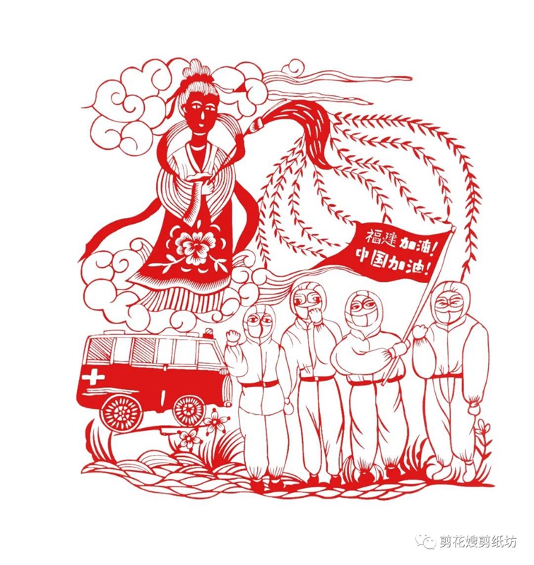 文明風4月6日訊 4月5日,國家級非物質文化遺產浦城剪紙技藝省級傳承人周冬梅以“中國加油”“福建加油”為題材創作了一幅《福建戰“疫”》剪紙作品,通過剪紙作品提振人民群眾抗疫信心,展現非遺力量。