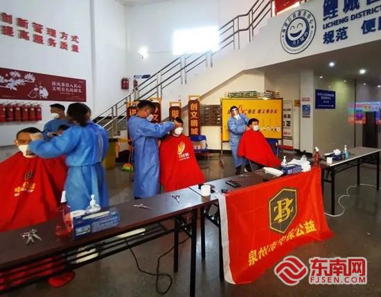 志愿者幫助抗疫一線工作人員理發。 鯉城區委文明辦 供圖