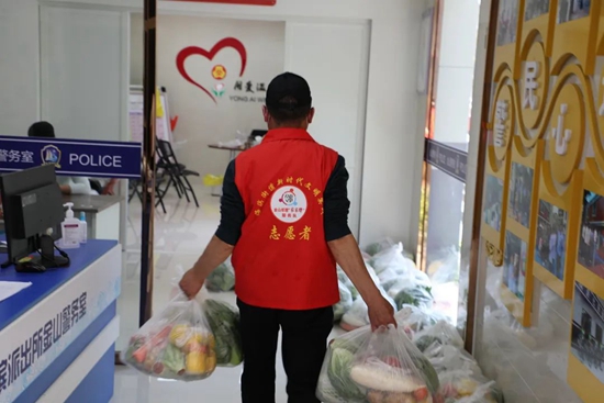 客服組需要耐心,派送組則考驗體力。當各個保供企業物資車到達社區居委會門口后,派送組的志愿者們便忙碌起來,雞蛋、蔬菜、水果、肉類、魚類、面粉......清點完各式各樣的物資后,志愿者們便三兩一組,按片區為居民送貨。