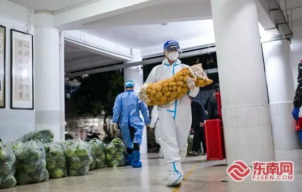 安溪縣藍(lán)天救援中心志愿者為群眾送來(lái)免費(fèi)的新鮮果蔬。受訪者 供圖