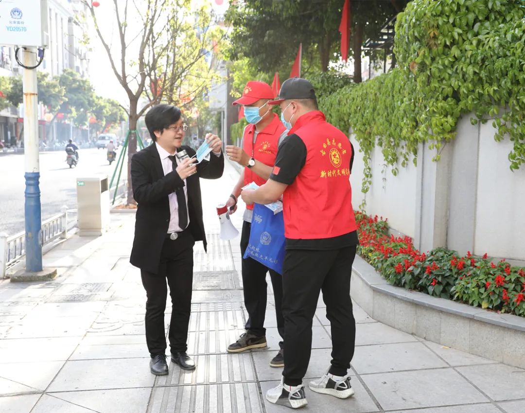 “記得出門戴口罩。”“沒事情早點回家。” 志愿者們身著文明實踐中心紅色馬甲,有序分組在文化廣場、十字路口等人員密集場所,通過流動小喇叭喊話、防疫知識宣傳單發放,向廣大群眾宣傳疫情防控知識和返古防控流程,對公共場所未佩戴口罩的群眾進行文明勸導并免費發放一次性醫用口罩,幫助市民進一步提升疫情防護意識。