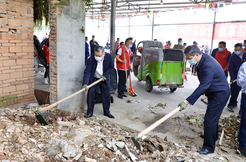 活動現場,區四套班子領導,福州新區倉山功能區、金山工業園區處級領導,區法院院長,區檢察院檢察長在城門鎮林浦村主會場,與干部群眾、志愿者一起,拿起掃把、鋤頭、鐵鍬等清潔工具,參與“‘護河愛水、清潔家園’倉山在行動”活動。