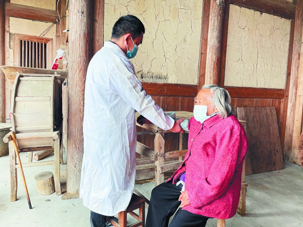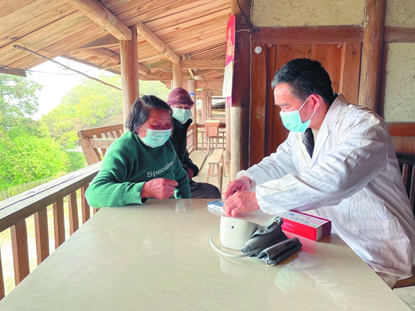 “陳阿姨,您這血壓又高了起來,是不是最近吃的菜又放了很多鹽了?鹽一定要少吃,血壓才能控制住。”“最近睡得好嗎?一般幾點睡的?睡眠質量不好也是容易引起高血壓的。”……4月7日,賴其樹一邊幫陳阿姨量血壓,一邊叮囑道。他口中的陳阿姨是格中村已90歲高齡的獨居老人陳下,一提到賴其樹,她就贊不絕口:“其樹是個很好的醫生,他來格中5年,就‘照顧’了我5年,每周都會來我家里給我量血壓、送藥、檢查身體,他特別細心,對我們老人家也很有耐心。”。