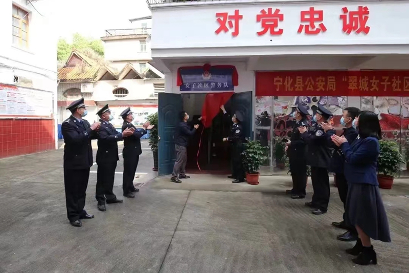 文明風(fēng)4月21日訊 4月19日上午,寧化縣公安局“翠城女子社區(qū)警務(wù)隊(duì)”揭牌儀式在翠江派出所舉行,寧化縣副縣長、公安局局長湯有芬同志出席并講話,縣文明辦主任范衍荷,縣婦聯(lián)黨組書記、主席廖德華,翠江鎮(zhèn)黨委副書記、鎮(zhèn)長張清山等領(lǐng)導(dǎo),女子社區(qū)警務(wù)隊(duì)全體民警、輔警共計(jì)20余人參加儀式。