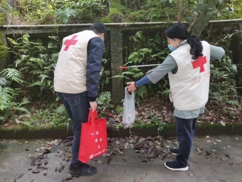志愿者清理人行道路垃圾 南平市紅十字會供圖