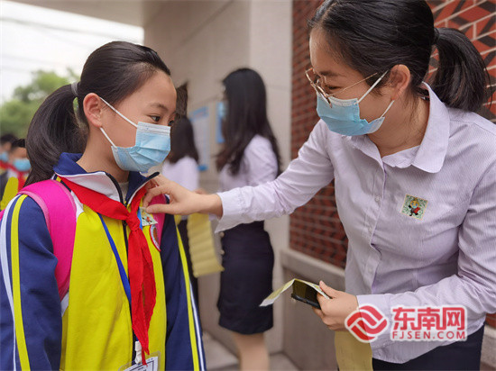 一大早,泉州市第二中心小學(xué)校門口拉開警戒線,設(shè)置關(guān)卡,入校通道地標(biāo)清晰醒目,為學(xué)生們把好安全第一關(guān)。排好隊(duì)、測(cè)量體溫、清潔手部……在老師的引導(dǎo)下,學(xué)生們有序走入校園。