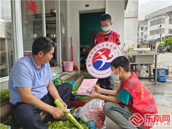 雙嶺村新時代文明實踐站志愿者進社區(qū)開展環(huán)保宣傳。(陳秀治 攝)