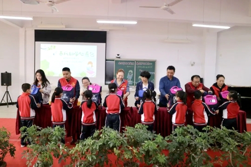 為學(xué)生帶發(fā)放心愿包 王希帆 攝