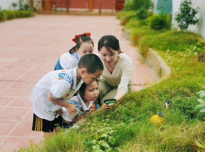 圖為:漳州市機(jī)關(guān)幼兒園老師利用幼兒園的自然角、種植地等,引導(dǎo)幼兒親近大自然,感知植物的生長(zhǎng)