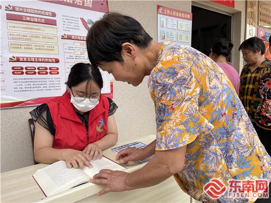 崎溝村社工為村民解讀民法典條例 (林艷 攝)