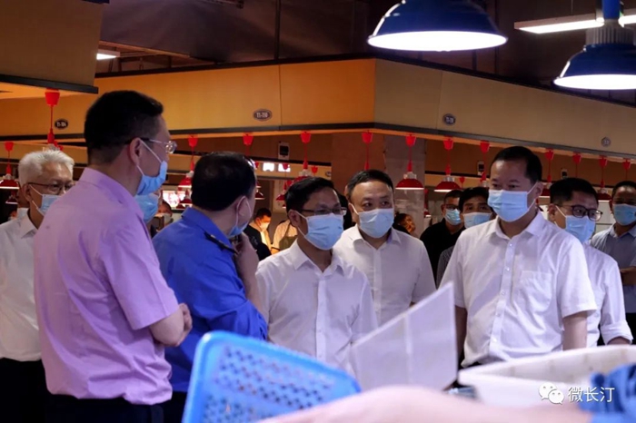 省委宣傳部副部長、文明辦主任陳添貴等一行在長汀縣紅衛(wèi)農貿市場調研