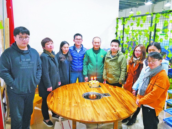 部分受資助的孩子與陳新紅(左二)、游超凡(左一)一起為游文晃(中)慶祝生日。圖受訪者提供
