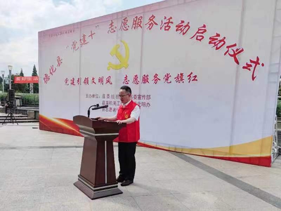 儀式上,德化縣志愿者協會會長、德化縣黨員志愿服務中心辦公室主任郭昌筑向全體黨員干部發出倡議,倡議大家充分發揮黨建引領、黨員先行的模范帶頭作用,大力弘揚“奉獻、友愛、互助、進步”的志愿服務精神,積極投身到“黨建引領文明風,瓷都志愿黨旗紅”的各項志愿服務活動中,把黨員責任擔起來,把志愿精神揚起來,服務群眾,奉獻社會。