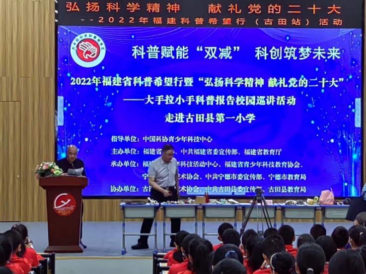 文明風5月27日訊 5月20日,由福建省科協、省委宣傳部、省教育廳主辦的福建省“科普希望行”活動走進古田縣。四位不同領域的專家學者分赴古田縣第七中學、玉田中學、第一小學、第三小學開展科普講座。