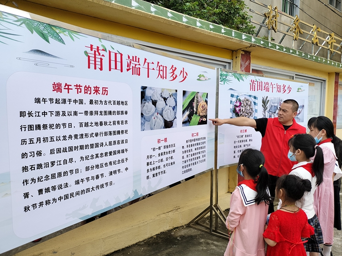 志愿者為同學們講解莆田端午文化。涵江區委文明辦供圖