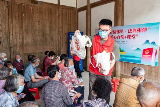 5月30日,在端午節到來之前,德化縣赤水鎮猛湖片區“黨建+”鄰里中心和縣老年大學結合民法典宣傳月舉辦了“粽情鄰里·法典相伴”暨“愛心食堂+課堂”活動,不僅為片區的留守老人送上了熱騰騰的粽子,還送上涉養老詐騙相關知識和《民法典》案例課。