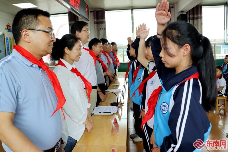 向參會領導嘉賓敬獻紅領巾 鄭正華 攝