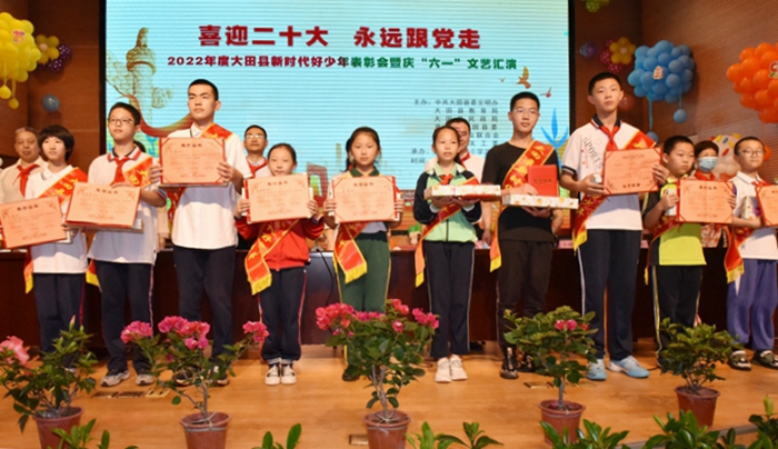 縣委常委、宣傳部部長翁淑燕在表彰會上對未成年人提出六點希望:樹立高遠志向,立好人生脊梁,努力成為可堪大用、能負重任的棟梁之材;養成優良品德,懂得感恩、與人為善、明禮誠信,爭做文明美德的傳承者、文明風尚的傳播者、文明榜樣的傳頌者,自覺踐行社會主義核心價值觀的小模范;練就過硬本領,勇于探索、敢于實踐,爭當勤奮學習、自覺勞動、銳意創新的小標兵;鍛造強健體魄,磨煉堅強意志,知難而進、不怕挫折,積極向上、熱愛生活,做身心健康的新時代好少年;受表彰的新時代好少年們珍惜榮譽,戒驕戒躁,爭取進步;全縣少年兒童以新時代好少年為榜樣,立好心中標桿,努力成長為能夠擔當民族復興大任的時代新人。同時,大田縣實驗小學學生進行“六一”文藝匯演活動。(大田縣委文明辦供稿 陳麗芳)
