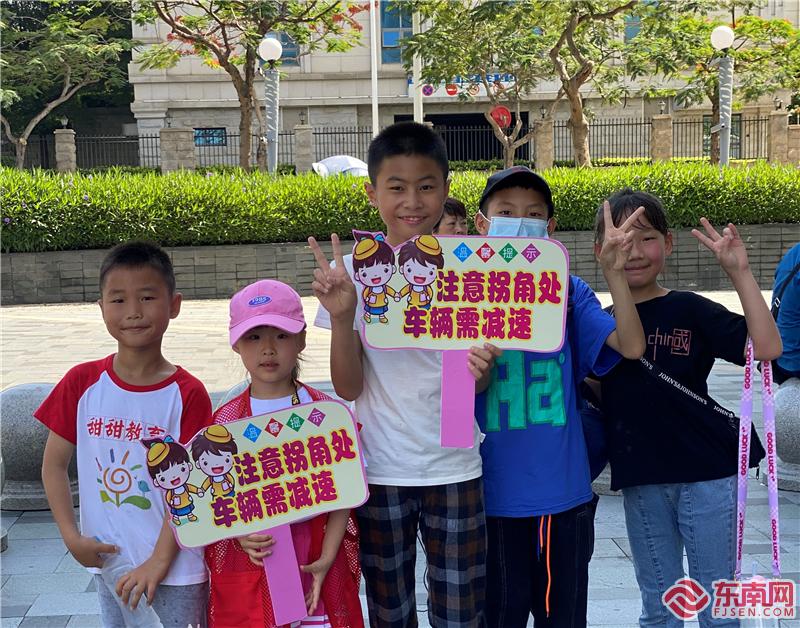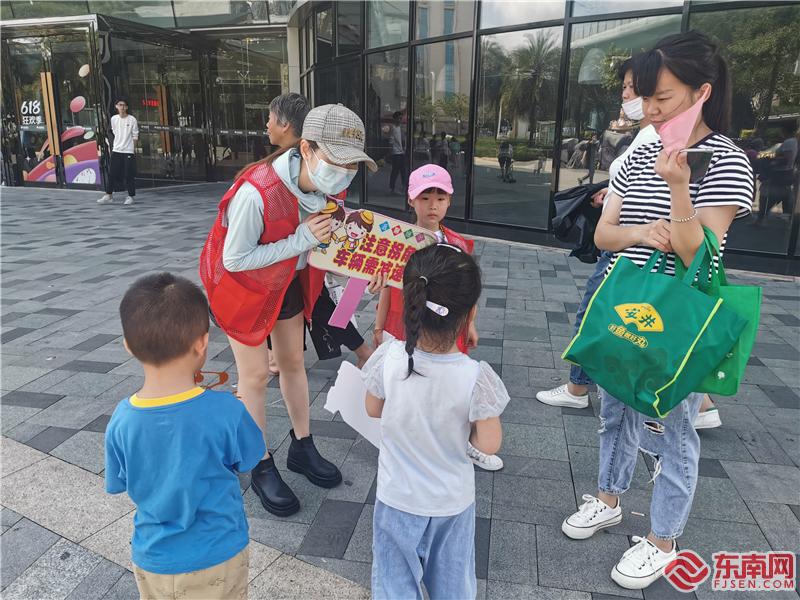 志愿者們向小朋友們宣傳文明出行(周忻攝)