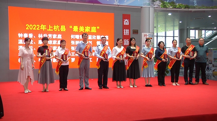 揭曉儀式上為2022年全國、省、市“五好家庭”“最美家庭”頒發獎杯及證書。為2022年縣“最美家庭”“五好家庭”代表頒發獎杯及證書。會上,獲得全國“五好家庭”,省、市“最美家庭”“五好家庭”,縣“最美家庭”的代表分享了各自的家庭家風故事。