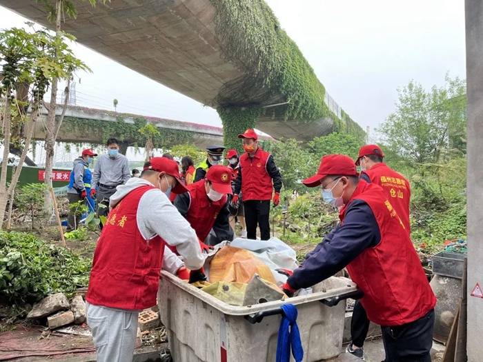 倉山區委文明辦工作人員攜手志愿者共同開展“護河愛水、清潔家園”行動(倉山區委文明辦供圖)