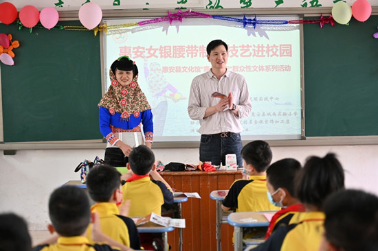 惠女銀腰帶制作技藝進校園 鄭慧芬攝