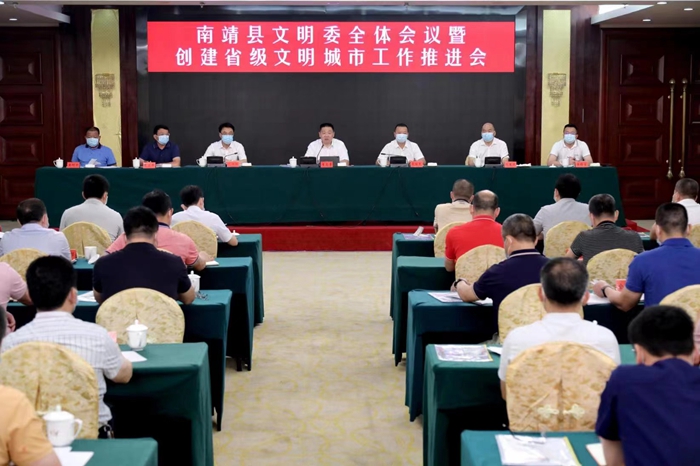 文明風6月13日訊 近日,南靖縣召開縣文明委全體會議暨創建省級文明城市工作推進會,學習宣傳貫徹習近平新時代中國特色社會主義思想和習近平總書記關于精神文明建設的重要論述精神,傳達省市文明委關于精神文明建設工作有關精神,再次全面動員部署省級文明城市創建工作。縣領導李志勇、蔡銘泉、沈洪坤、沈惠平、陳立平、潘福寶、黃阿中及各鎮(園)、縣直有關部門負責人參加會議。