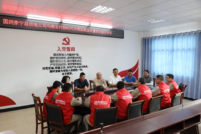 文明風6月17日訊 為進一步推進文明單位創(chuàng)建與新時代文明實踐的融合發(fā)展,6月16日上午,國網泰寧縣供電公司與泰寧縣杉城鎮(zhèn)新時代文明實踐所完成結對共建協(xié)議的簽訂,該公司調控中心黨支部與杉城鎮(zhèn)南會村新時代文明實踐站同步完成結對共建,并同步啟動“泰寧光明先鋒‘電’亮鄉(xiāng)村振興”系列活動。