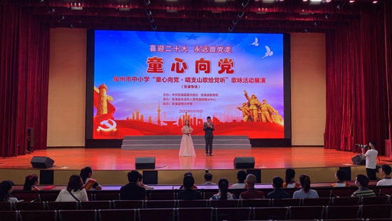 文明風(fēng)6月17日訊(記者 林杰 通訊員 吳遠(yuǎn)景)6月16日下午,由安溪縣委文明辦、安溪縣教育局共同主辦的“喜迎二十大 永遠(yuǎn)跟黨走”——2022年安溪縣中小學(xué)生“童心向黨·唱支山歌給黨聽(tīng)”歌詠活動(dòng)展演在安溪恒興中學(xué)大禮堂舉行,來(lái)自全縣中小學(xué)校的12支代表隊(duì)參加展演,傳唱各類(lèi)紅色經(jīng)典歌曲。