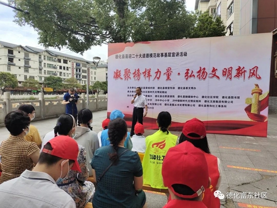 文明風6月22日訊 為進一步宣傳道德模范的先進事跡,形成學習道德模范、爭當道德模范的濃厚氛圍,6月20日,德化縣開展“凝聚榜樣力量 弘揚文明新風”主題宣講活動。此次活動由德化縣委組織部、德化縣委宣傳部、德化縣委文明辦主辦,富東社區新時代文明實踐站承辦,德化縣委編辦、德化縣自然資源局等單位聯合協辦。