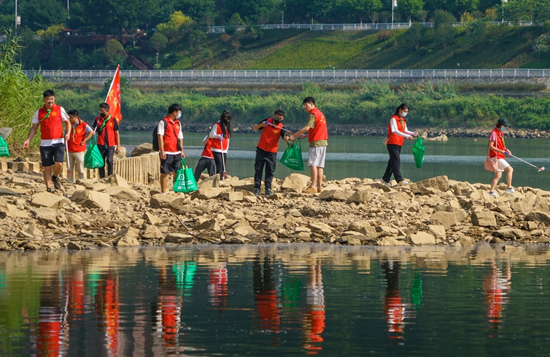 南平市環(huán)保志愿者在“百姓河長 潔凈母親河”主題活動中開展凈灘行動 南平市委文明辦供圖