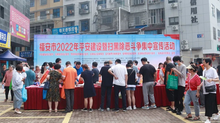 文明風(fēng)6月24日訊 為深入推進福安市平安建設(shè)和掃黑除惡斗爭工作,營造和諧穩(wěn)定的社會環(huán)境,提高市民文明素質(zhì)和城市文明程度,進一步鞏固省級文明城市創(chuàng)建成果,推進文明社區(qū)、美麗鄉(xiāng)村建設(shè),建設(shè)宜居、宜業(yè)、宜商、宜游的幸福美好家園。6月22日上午,福安市新時代文明實踐志愿服務(wù)總隊法律服務(wù)志愿服務(wù)隊組織市委政法委、市委宣傳部、市掃黑辦、市直機關(guān)工委、市法院、市教育局、城北街道黨工委辦事處等9家單位的法律服務(wù)志愿者在城北街道錦湖商城廣場開展平安建設(shè)暨掃黑除惡集中宣傳活動。