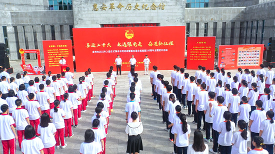 6月23日,團泉州市委、團惠安縣委在惠安縣革命歷史紀念館廣場舉辦“喜迎二十大、永遠跟黨走、奮進新征程”泉州市2022年入團儀式集中示范活動暨惠安縣慶祝建團100周年主題團日活動。惠安縣委常委、組織部部長洪亞清出席活動并致詞,團市委組織部部長蔡裕厚、團縣委書記梁嘉毅,市、縣優秀團員團干代表和惠安一中、惠安三中、高級中學、螺城中學2022年新發展團員共200余人參加活動。