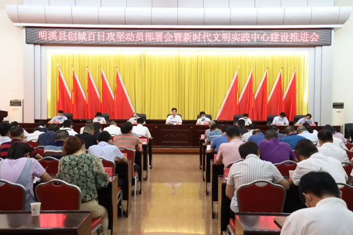 文明風6月29日訊 6月28日,明溪縣召開創城百日攻堅動員部署會暨新時代文明實踐中心建設推進會,對創城和新時代文明實踐中心建設工作進行再部署、再落實、再推動??h委書記鐘科出席會議并講話,縣委副書記、縣長陳華偉主持會議,縣委常委、宣傳部部長楊元增安排具體工作。