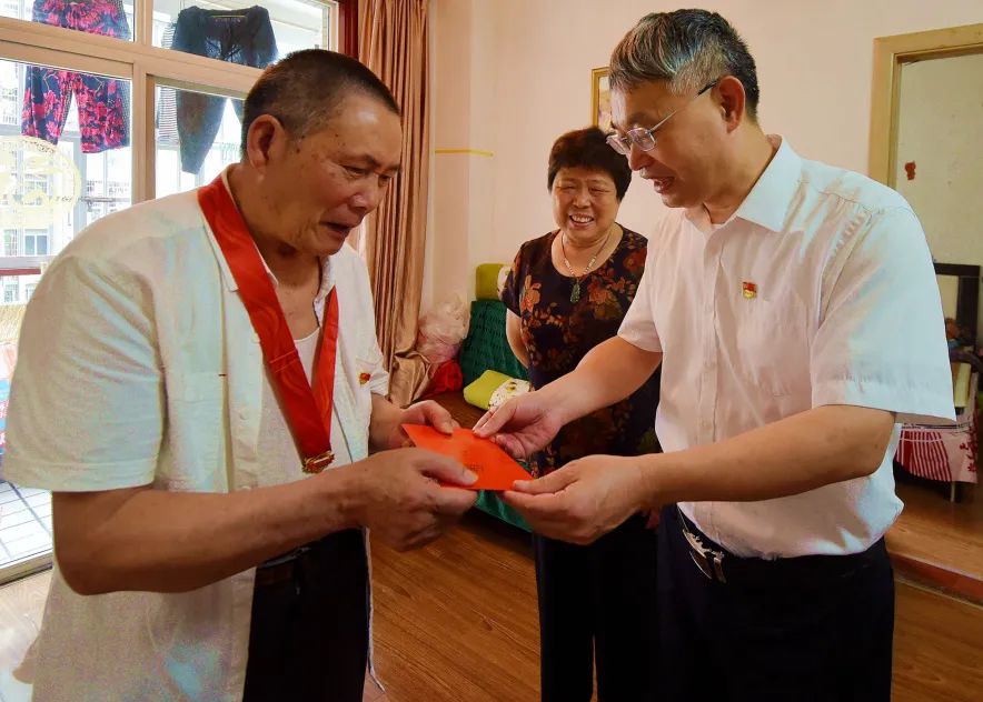 7月1日,蕉城區委書記何必良帶隊開展黨建工作調研暨“七一”慰問活動,看望慰問困難黨員并為黨齡滿50周年以上的老黨員代表頒發“光榮在黨50年”紀念章。區委副書記葉浩文參加活動。