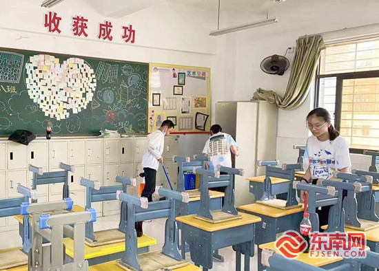 畢業生們動手打掃教室。鯉城區第三實驗小學供圖