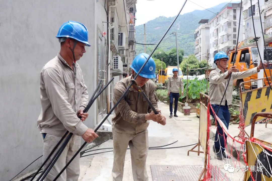 據現場負責人董欣楠介紹,麗城山莊片區“三線搭掛”嚴重,供電公司對該區域進行了短暫停電,同時派出施工人員實施低壓線路纜化改造,將桿上舊的低壓線路及電桿拆除,提升美觀度的同時,強化供電保障。“‘三線搭掛’是專指電力線、通訊線、廣播電線相互搭接、交叉、跨越的現象,不僅不美觀,還容易引發火災,是我們近期開展集中性‘飛線整治’的重點內容,我們今天上午8點多就開始進行施工了,預計今天下午五點前就可以正常供電了。”董欣楠說道。