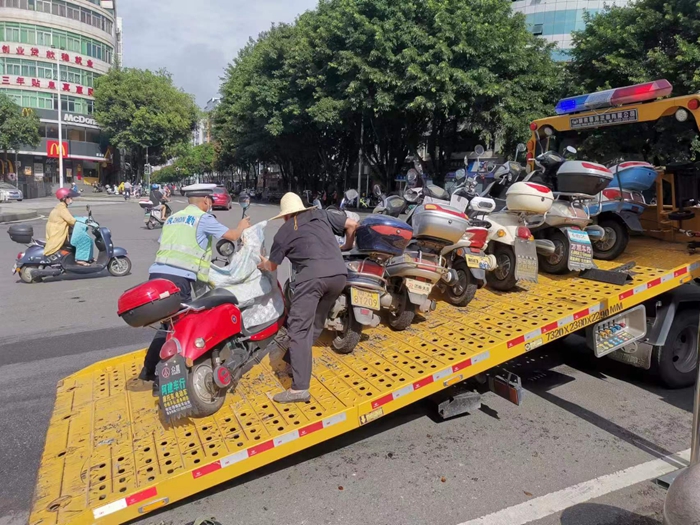 隨著永泰縣創建全國文明城市工作的深入開展,近日,永泰縣公安局交警大隊在城區持續開展摩托車、電動車非法加裝遮陽傘專項整治行動。行動中交警大隊組織警力在城區南湖路、上馬路、塔山路等重點路段采取定點查處和流動巡邏相結合方式開展集中整治,對于非法加裝的遮陽傘予以拆除并收繳,同時對駕駛人進行依法處罰和現場宣傳教育,以嚴查嚴管的高壓態勢引導廣大市民自覺維護安全、暢通的交通秩序。