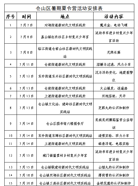 文明風7月13日訊 為了豐富青少年兒童的暑期生活,培養提高青少年兒童的創新意識和創造能力,提高青少年兒童的綜合素質,培養青少年兒童勤學習、善動腦的良好習慣,養成科學、文明、健康的生活方式。倉山區開展了豐富多彩、形式多樣的夏令營活動。