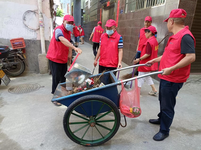 7月13日,縣直各單位志愿者深入網格片區開展環境衛生整治。周寧縣委文明辦供圖