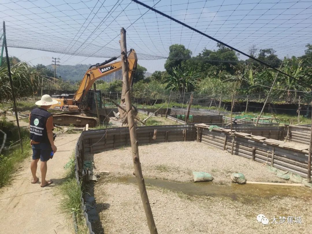 日前,九都鎮集結各方力量,頂著酷暑出動20余人,對貴村村違規牛蛙養殖場依法強制拆除,拆除面積約300平方米。