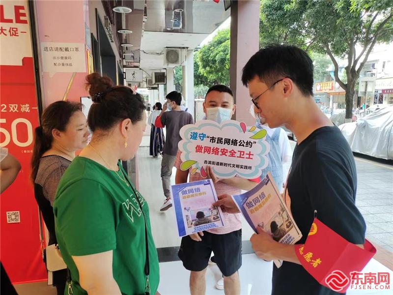 志愿者們沿街宣傳文明上網(wǎng)倡議書(杏濱街道新時代文明實(shí)踐所供圖)