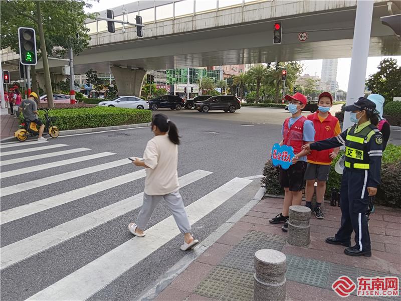 文明風7月20日訊(羅蓮)為進一步倡導轄區居民自覺遵守交通規則,養成良好的文明出行習慣,日前,在廈門市集美區寧海社區黨委、居委會的支持下,寧海社區新時代文明實踐站在萬科里交通路口開展“文明出行 你我共建”文明值崗志愿服務活動。