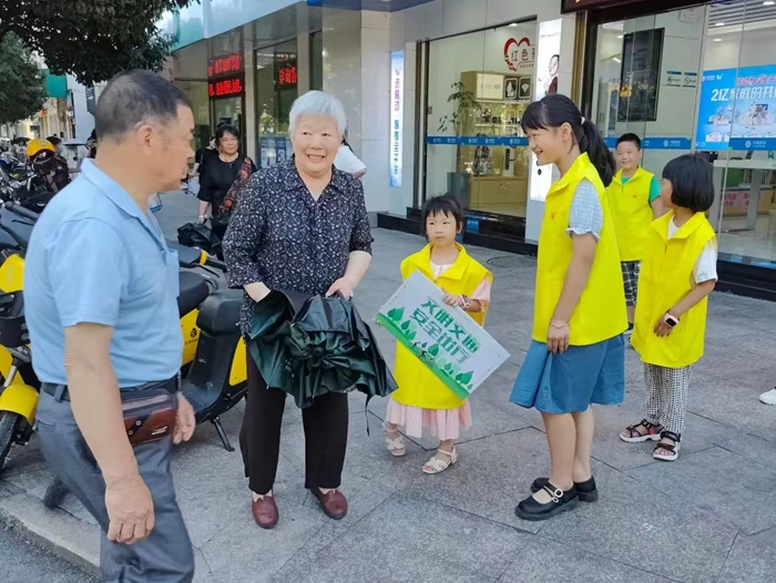青少年志愿者上街開展文明行為勸導。周寧縣文明辦供圖