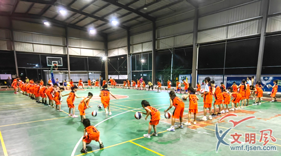 持球、抱球、單手拍球、投籃……從7月18日起,每周一至周四晚上在溪尾社區內都能看見一群小萌娃化身“灌籃高手”揮灑著汗水和激情。籃球教練陳鴻鑫向孩子們介紹籃球型號、起源、花式籃球的技能等,帶領他們練習持球、抱球、撥球、單雙手拍球、拋接球、傳球以及籃球操的編排等,由易到難、循序漸進。