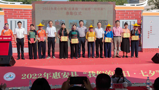 活動期間,還舉行了小岞鎮新一批“好妯娌”“好婆媳”“好鄰居”表彰儀式,開展了制作小岞七夕傳統手鏈的民俗體驗活動。