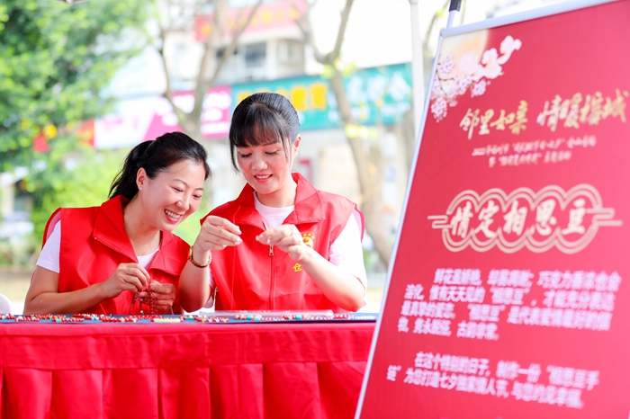 現(xiàn)場還設(shè)置了七夕蠶豆品嘗區(qū),七夕民俗打卡區(qū),閩臺七夕節(jié)俗展示以及黨史學(xué)習(xí)宣傳等精彩的展示區(qū),而由各參加活動的文明單位組成的志愿服務(wù)隊也為市民朋友提供了豐富多彩的志愿服務(wù)活動,區(qū)委文明辦現(xiàn)場組織志愿者開展了移風(fēng)易俗宣傳,區(qū)委區(qū)直機關(guān)工委組織黨員志愿者現(xiàn)場講解黨史知識,宣傳近鄰黨建并現(xiàn)場派發(fā)宣傳品及宣傳資料,北京同仁堂倉山萬達(dá)店開展防暑送清涼志愿服務(wù)活動也吸引了大量市民駐足。市民朋友紛紛在“全家福”“七夕·幸福有你”、黨史學(xué)習(xí)等趣味打卡立牌前拍照留念。
