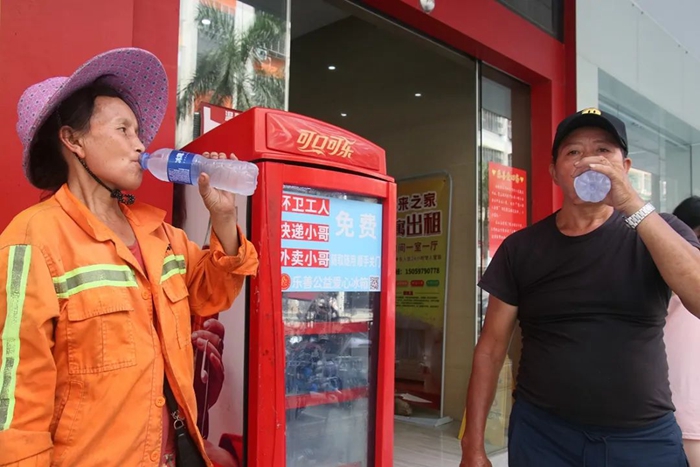 “愛心冰箱”面向外賣小哥、快遞小哥、環衛工人等戶外工作群體,但為何現在市民也來免費取水了呢?