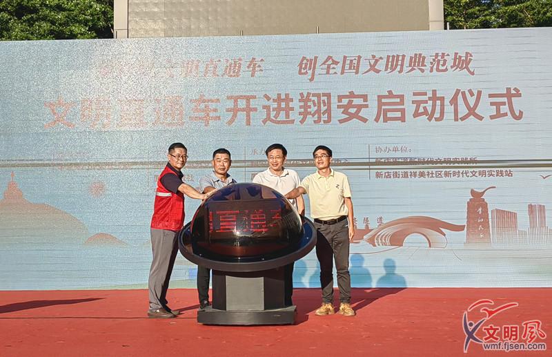 伴隨文明直通車的啟動球亮起,“乘鷺島文明直通車 創全國文明典范城”文明直通車正式開進翔安。